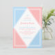Pearl Shimmer Babydusche einladen. Schönes modernes Design mit minimaler Duscheinladung: Diese frische und leichte minimale moderne Einladung wird mit einer Mischung aus geometrischen Designs.. Mit beiden Farben im Design, diese blaue, rosa und weiße Dusche Einladung Karte Design würde auch Anzug für ein Geschlecht zeigen Party Ansammlung.