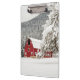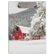 Frischer Schnee auf roter Scheune Klemmbrett