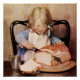 Jessie Willcox Smith war eine amerikanische Künstlerin, die für ihre idyllische Kindheitssymbole bekannt ist. 15 Jahre lang war sie die Titelillustratorin der Zeitschrift Good Housekeeping.Ein junges Mädchen mit blonden Haaren sitzt an einem Tisch und schneidet in einen großen Brotlaib. Sie trägt ein blaues Kleid und eine weiße Schürze, neben ihr eine Metalltasse. Dieses Gemälde heißt "Frisches Brot".