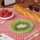Frisches Kiwi. Runde Scheibe abgeschieden Pappteller