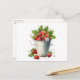 Eine Postkarte mit einer sommerlichen Grafik eines Haufen Erdbeeren, die in einem Eimer überlaufen.