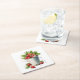 Papier (robuste Zellstoffplatte) Untersetzer mit einer sommerlichen Grafik eines Haufen Erdbeeren, die in einem Eimer überlaufen.