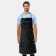 Personalisierte barberne Stylist Schürze mit silbergrauem, fett formatiertem Schriftzeichen-Logo und mit dem Namen und Titel des Barbiers über der schwarzen Schere gemusterten Hintergrund. ++++++++ Perfect for a beruflich men men salon staff look.