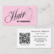 Personalisierte Visitenkarten für Friseure oder Friseursalons. Fügen Sie Ihre eigenen Details auf der Vorder- und Rückseite hinzu. Stellen Sie sicher, dass Sie Ihre eigene Website-URL zum QR-Code auf der Rückseite hinzufügen.
