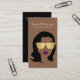 Eine kühne, schwarze und bräunliche Illustration eines Mädchens mit dunklen lila Lippen und goldener Sonnenbrille wird zu einem auffälligen Maskottchen auf dieser stilvollen Visitenkarte für Friseursalons und Stylisten. Illustration und Design © 1201AM CREATIVE