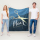 Friseur / Friseursalon / Friseursalon / Friseur / Schönheitssalon / Makeup Künstler / Stylist / Hochzeitsplaner / Eventplaner / Berater / Boutique Besitzer / modische Personalisiert Fleece Blanket. Moderne Imitate Gold Scheren auf dunkelblauem Wellenmuster Grunge Hintergrund.