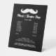 Herren Friseur Shop Friseur Salon Preisliste Menü Pedestal Schild für Tisch oder Theke oben. Machen Sie Ihr eigenes Preislisten-Menü für Ihr Unternehmen. Berufliches Gentlemen's Schnurrbart Logo mit cooler Schriftzypografie. Modernes minimalistisches Design für alte Schulgriller. Anpassbare Hintergrundfarbe. Fügen Sie Firmennamen, Slogan, Dienstleistungen, Haarschnitte, Styling Optionen, Preise, Öffnungszeiten, Telefon etc. hinzu. Berufliches Marketing. Schwarz/Weiß oder Sonderfarben.
