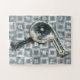Die trocknende Malerei in lockeren, offenen Strichen mit einem Fön auf den blauen grauen Quadraten.