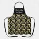 Hübscher Friseur- oder Friseursalon-Schürze mit schwarzem Hintergrund mit mehrmaligen Mustern von Haartrockner, Schere, Kamm und anderen Stilmitteln. Fügen Sie Ihren persönlichen Namen oder Salon Firmennamen in lustigen Skripten handgeschriebenen Stil Schriftart. Erstellen Sie für den Friseur eine Stylist-Schürze, ob eine oder mehrere, keine Mindestbestellung, keine Designgebühr.