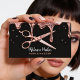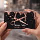 Machen Sie Ihre Marke unvergesslich mit dieser schicken und glamourösen Visitenkarte! Das Design zeichnet sich durch eine atemberaubende Rose goldmetallic und Glitzer Tropfen-Effekt aus, der über einen ausgeklügelten schwarzen Hintergrund fließt. Ein Schwerpunkt der realistischen Rose Goldschere kommuniziert sofort Ihren Beruf. Diese Karte ist ideal für Friseure, Friseursalons, Friseure und Beauty Professionals, die ein hochmodernes, luxuriöses Aussehen gewollt haben. Personalisieren Sie es mit Ihrem Namen (z.B. "Melanie Parker") und all Ihren Kontaktinformationen für ein sofortiges Upgrade auf Ihr berufliches Bild!