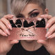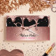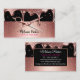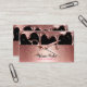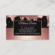 Machen Sie mit dieser atemberaubenden, hochmodernen Visitenkarte eine unvergessliche Erklärung! Das Design schafft einen dramatischen Kontrast mit einem schwarzen Hintergrund oben und einem blendenden Feld von Rose Gold Glitzer unten, verbunden durch eine stilvolle Rose Gold metallische Tropfen Effekt. Eine realistische Rose mit goldfarbener Schere nimmt die Bühne in der Mitte ein und macht deutlich, dass Sie in der Schönheitsindustrie beruflich sind. Diese schicke, zweifarbige Karte ist das ultimative Zubehör für eine moderne und luxuriöse Marke. Stellen Sie sich Ihren Namen (z.B. "Melanie Parker") und alle Kontaktdaten für ein sofortiges Markenaufrüsten ein!