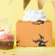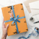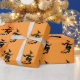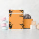 Orangefarbenes und schwarzes Halloween-Party Verpackungspapier mit Hexe auf Besen. Fügen Sie Ihren eigenen personalisierten Text hinzu.