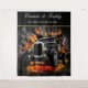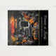Frisierte Auto Party Feuer Hochzeit Hintergrund hat eine orangefarbene Flamme aus und um ein altes Auto herum. Unten in der Mitte und ein schwarzer Hintergrund mit einem Platz, um alle Ihre einladenden Text.