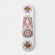Ein Skateboard mit einem alte Schulrad u. einem Fliegenauge mit dem Pinstriping.