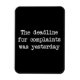 Die Frist für Beschwerden war gestern. Wir akzeptieren derzeit keine Beschwerden mehr. Bitte unterlassen Sie sich nicht zu beschweren.
