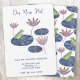 Mit einer lustigen Hand bemalt Aquarellfrosch sitzend auf einem Wasserlilienpolster. Text liest Our New Pad, und kann geändert werden, wenn Sie es vorziehen. Personalisieren Sie mit Ihrem Namen und neuen Adressdaten. Reverse zeigt ein passendes Froschmuster. Originelle Kunst von Nic Squirrell.