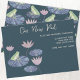Mit einem lustigen Aquarellfrosch, der auf einer Wasserlilienplatte auf dunkelgrünem, aquamarinem Hintergrund sitzt. Text liest Our New Pad, und kann geändert werden, wenn Sie es vorziehen. Personalisieren Sie mit Ihrem Namen und neuen Adressdaten. Reverse zeigt ein passendes Froschmuster. Originelle Kunst von Nic Squirrell.