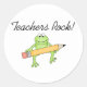 Ein lächelnder grüner Frosch hat einen großen Bleistift und schwarzer Text liest "Teachers Rock!" auf Teachers Rock T - Shirt, Tasse, Mousepads, Tote Taschen, Karten, Aufkleber, Magnete, und vieles mehr!
