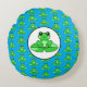 Der grüne und schwarze Frosch auf einer Lilientuchdecke.