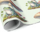 Wrapping paper with a cool illustration. Featuring a green frog sitting on a mound of grass. A big red mushroom sheltering him from the elements. A couple of little toadstools nearby.