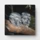 Auf einem Baumzweig nachts sind zwei junge, schläfrige Frogmouth Owls abgebildet