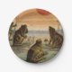 Vintage Frogs sitting on Lily Pads during Sunset and the Moon - This vintage frog illustration is based on an antique frog painting that was published in a book in the late 1800s. The group of vintage froggies are sitting around, doing what all good Victorian frogs do -- lazing on their lily pads waiting for the sun to set. These little frogs are cute, and so old-fashioned! The vintage frog illustration is the perfect gift for your loved ones who collect frogs and want to have some frog gifts that they've never seen before. This unique frog gift is perfect! The frogs are waiting for the sun to set, before they start singing their cute froggy songs or the evening.
