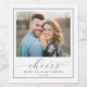 Dieses Wein-Etikett für Hochzeiten zeigt ein modernes und elegantes Design mit einem großen, gerahmten Foto, das den oberen Teil einnimmt. Die Farbpalette umfasst natürliche Töne aus dem Foto, ergänzt durch einen monochromen Textbereich in schwarzer Schreib- und Druckschrift auf weißem Hintergrund. Die Typografie hebt das Wort "Prost" in einer eleganten Kursivschrift hervor, gefolgt von Namen und Datum in sauberen, Großbuchstaben. Die Stimmung ist fröhlich und intim, perfekt für die Feier besonderer Momente wie Hochzeiten oder Jahrestage.