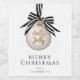 Frohe Christmas Bauble Schwarz-weiß Weinetikett