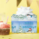 Dieses niedliche glückliche Feiertags-polarer Bärpenguin-Verpackungs-Papier kennzeichnet eine Schneeszene mit Schnee bedeckten Kiefernbäumen, fallenden Schnee, Schneeflocken, ein glücklicher polarer Bär, der einen blauen Schal mit einem Penguin auf seinen Schultern trägt, die eine Weihnachtsmannmütze tragen. Stilisierter blauer Text ist frohe Feiertage. Vervollkommnen Sie für die Verpackung der Weihnachtsgeschenke. Wählen Sie Ihre Medien und Größe des Packpapiers. Vergessen Sie nicht zusammenpassende Geschenk-Umbauten! Bringt unsere frohe Feiertage Eisbär-Pinguinprodukte zusammen.