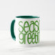 Ein handgezeichnetes digitales Textdesign Sprichwort Season's Greetings in grün, um Familie, Freunden oder Geschäftspartnern und Kunden ein frohes Weihnachtsfest, glückliches Neues Jahr und beste Wünsche für die kommende Festsaison zu wünschen!