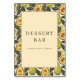 Dieses Hochzeitstisch-Schild verfügt über ein spielerisches und einladendes Design mit einem zentralen beigen Rechteck, das von einem schwarzen Rahmen umrandet ist und von einem wiederkehrenden Muster aus Avocado-Illustrationen umgeben ist. Die Farbpalette umfasst lebendige Grüntöne für die Avocados, hellgelbes Fruchtfleisch und tiefe braune Kerne, was einen fröhlichen und naturalistischen Look erzeugt. Elegante Serif-Typografie schreibt "DESSERT BAR" gefolgt von "PLEASE TAKE A TREAT!" in einem klassischen Stil und verstärkt die einladende Atmosphäre. Perfekt, um Ihrer Dessert-Station eine Note von Laune hinzuzufügen, kombiniert dieses Schild frische Produktmotive mit einem modernen Grafikstil, was es ideal für lockere und dennoch stilvolle Feiern macht.