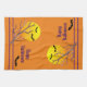 Dieses Handtuch hat ein lustiges Halloween-Design. Der hellgelbe Vollmond ist auf einem orangen Hintergrund mit einem Baumzweig und drei Fledermäusen im Vordergrund. Der "Happy Halloween" Text kann angepasst werden.