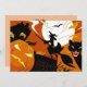 Frohe Halloween Hexe, Fledermäuse und Kürbis Karte
