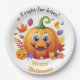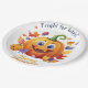Frohe Halloween Jack-O-Lantern auf Pile von Blätte Pappteller