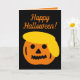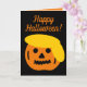 Frohe Halloween lustige Trump Kürbiskopf Cartoon Card. Niedliche Ferienkarte in Schwarz und Orange. Kürbiskopf Schnitte mit gelbem Haar. Fügen Sie Ihre eigenen Wünsche, politischen Zitat oder Sprichwort.