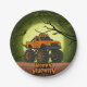 Frohe Halloween Monster Truck mit Fledermäusen und Pappteller
