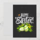 Eine lebendige Osterkarte mit farbenfrohen Eiern, eingebettet in saftig grünem Gras mit fröhlichen Blumen. Die Kamera zoomt langsam auf die Eier und hebt ihre komplizierten Designs hervor. Sanfte, warme Beleuchtung verstärkt die festliche Atmosphäre und schafft eine fröhliche Stimmung. Der Hintergrund ist subtil texturiert, was der Szene Tiefe verleiht. Der allgemeine Stil ist verspielt und hell, perfekt um das Fest zu feiern.