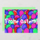 Osterkarte mit Frohe Ostern! und bunten Eiern. Wunschkarte für eine schöne Osterzeit für Familie und Freunde.