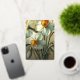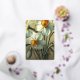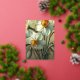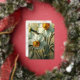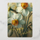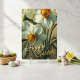 Personalisierte Vintage-Tulpen-Osterkarte mit Narzissen-Blumen, mit eleganter botanischer Blumenillustration in Orange-, Rot-, Gelb- und sanften Weißtönen. Ein raffiniertes, nicht-fotografisches Blumendesign, perfekt für Familienurlaubswünsche.