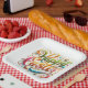 Frohe Ostertypografie im Glitzer Pappteller