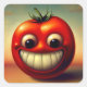 Anthropomorphe Tomate mit einem großen, übertriebenen Grin und breiten, ausdrucksstarken Augen.