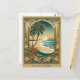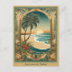 Diese tropische Weihnachtspostkarte zeigt ein traditionelles Jugendstil-Bild eines goldenen Bogens mit Palmen, Strand und schönem Sonnenuntergang. Sämtliche Texte können auf Ihren Anzug angepasst werden.