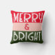 Mit diesem fröhlich-hellrosa grünen Retro-Weihnachtskissen dekorieren Sie ein Sofa oder einen Stuhl für die Ferien. Es ist in lebhaften Rosa-, Rot- und Grüntönen gehalten. Der Gruß ist "fröhlich & hell" in weißem, fett gedrucktem Retro-Grunge-Stil. Design ist sowohl auf der Vorder- als auch auf der Rückseite.