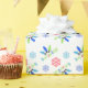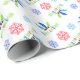 Farbenfrohe Weihnachtsverpackung mit weißem Hintergrund und festlichem Muster von Schneeflocken und Weihnachtsleuchten, mit grafischem Text, der Merry und Bright, in hellgrün, blau und rot liest.