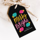 Niedliche und farbenfrohe Weihnachtsgeschenke mit der Phrase "Merry + Bright" vorne in Gold, Türkis, Rosa Handschrift vor schwarzem Hintergrund. Niedliche Weihnachtslampen umgeben den Text in heißen Rosa und Türkis mit goldfarbenen Basen. Personalisieren Sie die Vorderseite der modernen Geschenktipps, indem Sie Ihren Namen in weißem Text hinzufügen. Die Rückseite ist mit einem soliden, heißen rosa Hintergrund oder einer Farbe Ihrer Wahl versehen. Entworfen, um mit unserer Merry & Bright WeihnachtsLICHT Ferienkollektion zu koordinieren.