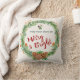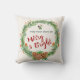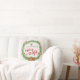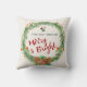 Ein Weihnachtskissen mit einem Aquarellkranz. Grüne Kiefernnadeln, Kiefernzapfen und dekorative Beeren bilden diesen festlichen Kranz. Im Kranz sind einige dekorative Ornamente und die Worte" können Ihre Tage Merry & Bright sein. Geschrieben in einem trendigen roten Schriftart.