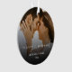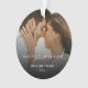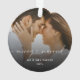 Ein moderner, minimaler, eleganter und stilvoller Weihnachtsschmuck für den neuen Herren und die Frau mit einem fröhlichen und verheirateten Herz-Schrift Kalligraphie-Schriftzeichen mit einem hübschen Foto des neu geborenen Ehepaares in verblasstem Overlay. Sie können das Foto und den Text personalisieren. Das Foto zeigt ein romantisches Foto eines Ehepaares, das sich gegenübersteht, wobei die Braut liebevoll das Gesicht ihres Bräutigams hält. (Dies ist ein Foto von Jonathan Borba auf Unsplash und dient nur zur Veranschaulichung. Bitte ersetzen und anpassen Sie es mit Ihren eigenen.)