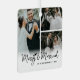 Minimalistische, frisch vermählte Sake-Ornament mit 3 individuellen Fotos Ihres Hochzeitstages, dem niedlichen Sprichwort "Merry & verheiratet", Ihrem Familiennamen und dem Jahr.