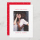 Minimalistische fröhliche und Verheiratete Weihnachtsschnee Modern Holiday Foto Card mit Ihrem personalisierten Foto in einem stilvollen Schneerahmen, individuellem Text, Urlaubstag auf der Rückseite in einem stilvollen, frisch und kräftig roten Farbtupfer Polka Dot Urlaubsmuster Design. Weiß schöne große Passepartout. Ideal als Grußkarten von Neuvermählten, Paaren, Familie, Kindern, Freunden.