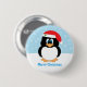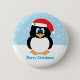 Verbreiten Sie irgendeinen Weihnachtsbeifall und -lächeln, wenn Sie diesen niedlichen frohe Weihnachtenpenguin-Knopf tragen. Er kennzeichnet einen Cartoon Penguin, der einen Weihnachtsmann-Hut gegen einen Schneeflockehintergrund trägt. Ein Spaß Weihnachtsknopf für Kinder alles Alters oder geben sie heraus für Feriengeschenke.